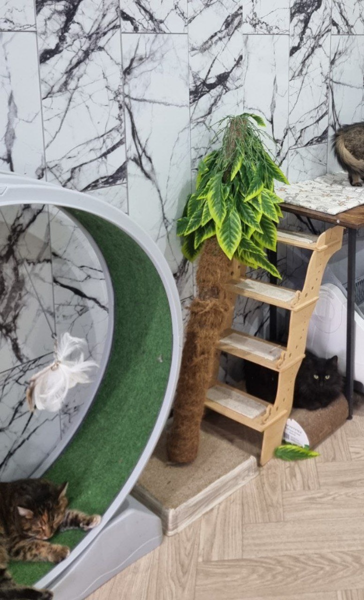 Одну пальму реставрировали частично. Укрепили ствол, верёвку на пальме обновили, с листьями пока проблема. Пускай эти дожирают.😁