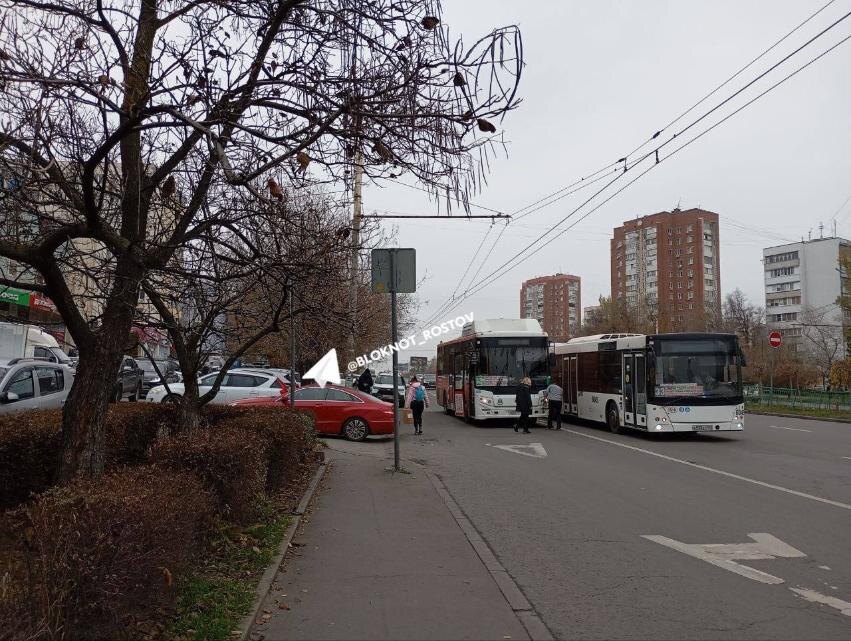 Уточняется, что из-за полученной царапины на красном Mercedes водителю автобуса пришлось высадить пассажиров и ждать приезда ГАИ.