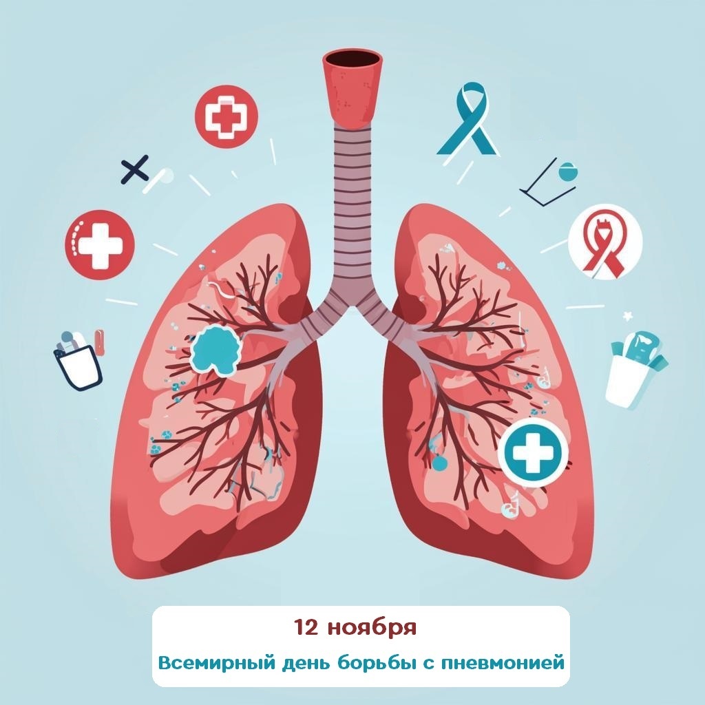 Ежегодно 12 ноября отмечается Всемирный день борьбы с пневмонией. Этот день призван привлечь внимание общественности к важности профилактики и своевременного лечения заболеваний дыхательных путей, среди которых одним из самых распространëнных является пневмония. Почему важна профилактика? Пневмония представляет собой воспаление лёгочной ткани, которое чаще всего возникает вследствие бактериальной или вирусной инфекции. Она поражает миллионы людей ежегодно, причём наибольшему риску подвержены дети младшего возраста, пожилые люди и лица с ослабленным иммунитетом. Основные меры профилактики: · Плановое посещение врача и прохождение диагностики; · Вакцинация от пневмококковой инфекции детей, лиц старше 60 лет, лиц с хроническими бронхолëгочными заболеваниями; вакцинация от гемофильной инфекции детей (пневмококк и гемофильная палочка — наиболее частые возбудители пневмонии); · Вакцинация от гриппа (т.к. пневмония часто бывает его осложнением); · Регулярное мытьё рук и соблюдение личной ги