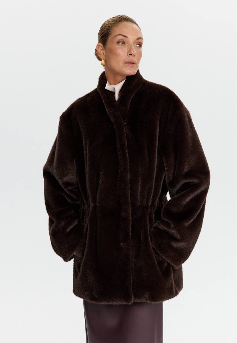 Невероятный экомех под норку и лаконичный силуэт — идеальная шуба в оттенке шоколада!