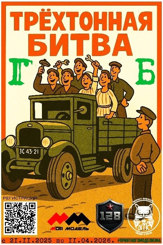 ДМС denisssmodels проводит онлайн-конкурс ГБ "Трехтонная битва". Спонсоры "Трёхтонной битвы": - "Моя Mодель 3D" - специализируются на выпуске различных печатных моделей, в ассортименте так же есть несколько конверсий для ЗИС. 128 | Товары для стендового моделизма - отечественная компания по производству товаров для стендового моделизма и творчества. В ассортименте есть вся необходимая химия для шикарной покраски ЗИСов! Ну и собственно ДМС denisssmodels. Напоминаем к участию в ГБ допускаются модели автомобилей Autocar SD, АМО-2, АМО-3, ЗИС-5 (5В), УралЗИС-5 , а также их длиннобазные версии (АМО-4, ЗИС-12 и прочие) в масштабе 1/35 любых производителей. Регистрация тут - https://vk.com/topic-100184484_54063822 Можно не ждать различные допы - главное зарегистрировать коробку с базовой моделью, а что будет дальше решите в процессе.