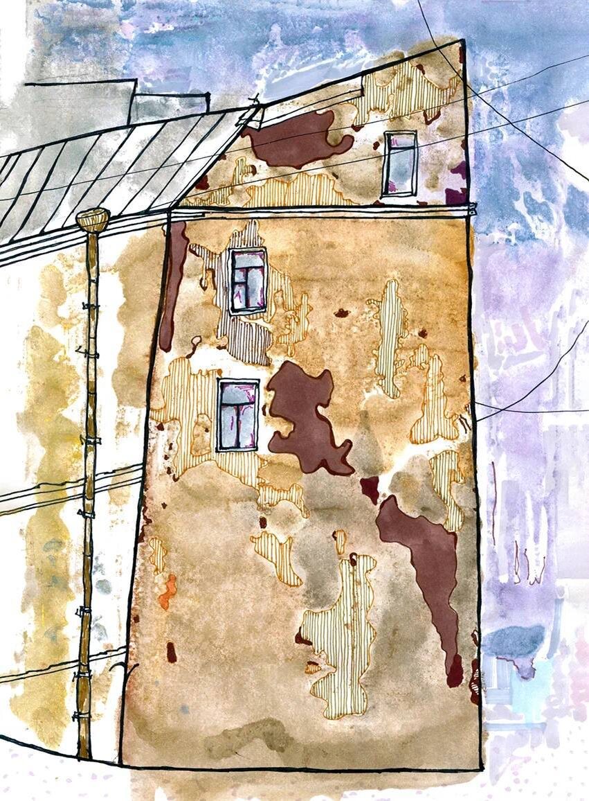 🏙️ Продолжаем знакомиться с выставкой! Сегодня – серия работ «Петербургские брандмауэры» Готовы окунуться в непарадный, но такой узнаваемый облик города? Сегодня мы представим вам серию работ «Петербургские брандмауэры: непарадный городской ландшафт» от авторов студии дизайна «Желтая улитка». Брандмауэр – это не просто стена дома, это молчаливый свидетель истории, архитектурный символ города, который вдохновлял больших русских художников. От мрачной красоты, замеченной еще Мстиславом Добужинским, до футуристических мотивов авангарда – эти глухие стены таят в себе целые истории. Воспитанники студии, используя технику монотипии и акварельные краски, смогли по-своему воссоздать фактуру старых стен с их неповторимыми кракелюрами. Добавленные линерами и маркерами графические детали – трубы, карнизы, провода – оживили эти «листы», придав каждому брандмауэру свою уникальность. Эти работы, объединенные в графический серию, создают настоящую «ткань» исторических кварталов – яркое и пестрое