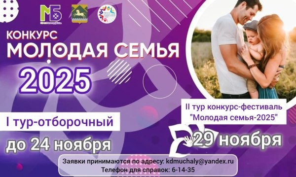 Комитет по молодежной политике проводит Районный конкурс «Молодая семья -2025». Районный конкурс «Молодая семья -2025» является традиционным мероприятием, целями которого являются: -укрепление семейных ценностей; -пропаганды института семей; -оказания помощи в организации доступа молодых семей. К участию приглашаются семьи проживающие на территории Учалинского района Республики Башкортостан имеющих детей. Возраст членов семей-участниц до 35 лет включительно. Конкурс состоится 29 ноября 2025 года. Для участия необходимо отправить анкету-заявку на почту KDMUchalyRB@yandex.ru телефон для справок: 6-14-35 Дом молодежи Заявки принимаются до 24 ноября 2025 года. Файл Молодая семья положение.pdf Источник https://uchaly102.ru/?p=110493
