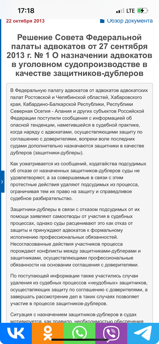 В Федеральную палату адвокатов от адвокатов адвокатских палат Ростовской и Челябинской областей, Хабаровского края, Кабардино-Балкарской Республики, Республики Северная Осетия - Алания и других субъектов Российской Федерации поступили сообщения с информацией об опасной тенденции, наметившейся в судебной практике, когда наряду с адвокатами, осуществляющими защиту по соглашению с доверителями, вопреки воле последних судами дополнительно назначаются защитники в качестве дублеров (защитники-дублеры).