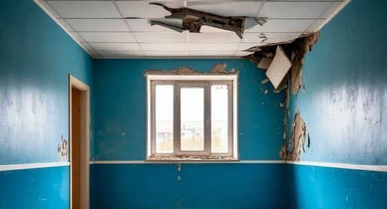 Рухнувший потолок администрация школы в Новосибирске подперла бревнами