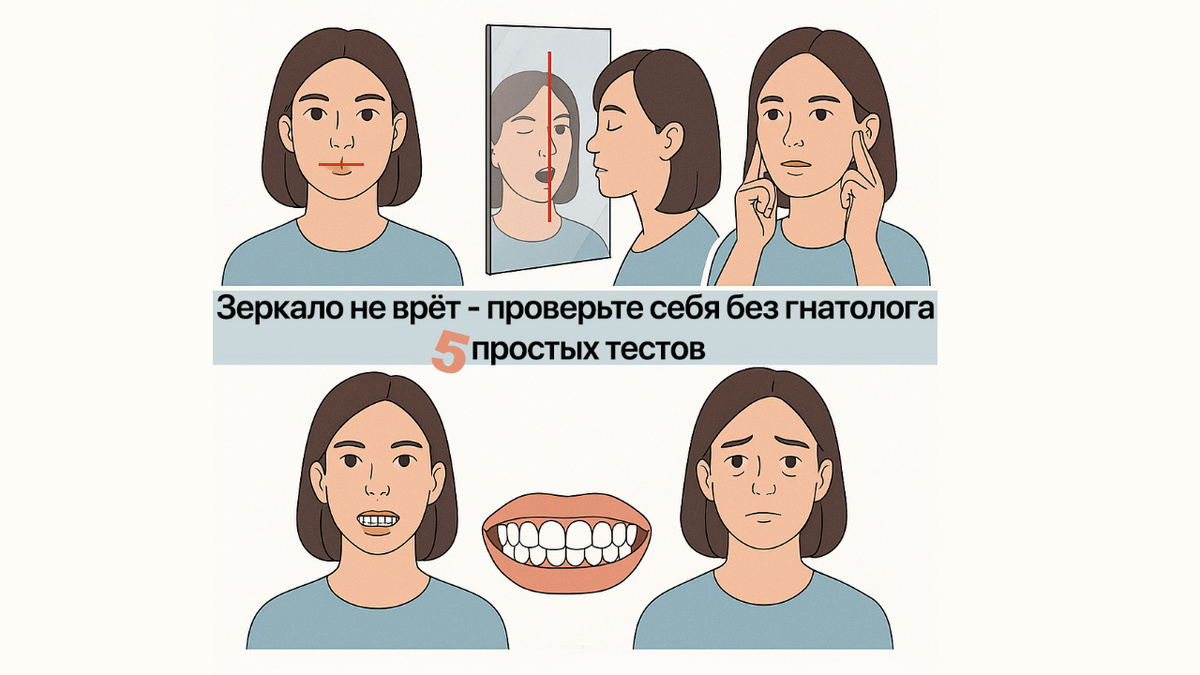 Говорит Сергей Алексеевич Морозов — врач-гнатолог и руководитель клиники Так Как Надо На приёме я всегда начинаю с простого осмотра. И вы можете повторить это дома — займёт пару минут. 1. Сомкните зубы и посмотрите в зеркало: середина верхней и нижней челюсти (между резцами) — на одной линии? ❌ Если «уехала» влево или вправо — это уже сигнал: нагрузка на сустав и мышцы распределяется неравномерно. 2. Нарисуйте маркером тонкую вертикальную линию на зеркале (стирается спиртом). Закройте один глаз. Медленно откройте рот — подбородок двигается по прямой или уходит в сторону? ❌ Уходит вбок — значит, челюсть «ищет», как обойти препятствие. Часто это перегрузка одной стороны, спазм или блок в суставе. 3. Щёлкает или болит при движении? Поставьте указательные пальцы на ямочки перед ушами (там, где сустав). Откройте рот. Чувствуете щелчок, «тычок», боль? ❌ Это не норма. Это сигнал, что суставу не хватает пространства или диск смещён. 4. «Край в край» и задние контакты. Поставьте передние зубы