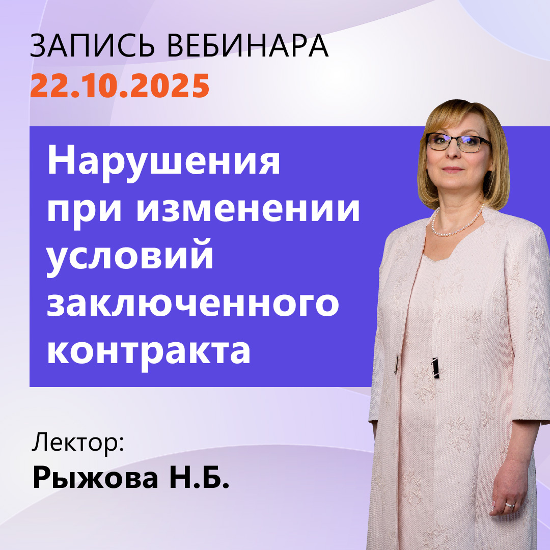 Смотрите в системе КонсультантПлюс новый видеосеминар для специалистов по госзаказу «Нарушения при изменении условий заключенного контракта» Закон N 44-ФЗ содержит закрытый перечень случаев, когда в контракт могут быть внесены изменения. В первой части вебинара КонсультантПлюс, проведенного 22.10.2025, лектор рассмотрит ошибки заказчиков, связанных с нарушением данного ограничения. Вебинар провела Рыжова Надежда Борисовна, руководитель учебно-методического центра АО «Сбербанк-АСТ», эксперт в области методического и правового сопровождения в сфере регулируемых закупок, автор обучающих курсов и методик. Смотреть видеоролик в КонсультантПлюс ⏩ Получить бесплатный пробный доступ к КонсультантПлюс #консультантплюс #видеоконсультант #закупки #44фз #изменениеусловийконтракта