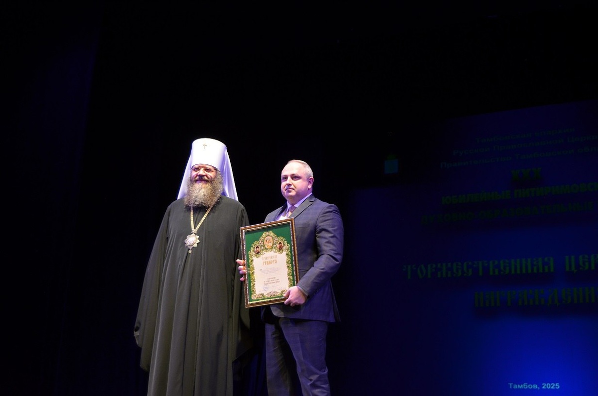 Глава администрации Тамбова Максим Косенков удостоен Архиерейской грамоты за усердные труды во славу Русской Православной Церкви. Награду градоначальнику вручил митрополит Тамбовский и Рассказовский Феодосий на пленарном заседании ХХХ Питиримовских духовно-образовательных чтений. "Благодарю Владыку за все его начинания на Тамбовской земле. Мы трудимся вместе, чтобы возрождать православные святыни, создавать новые, которые не только вписываются в современный облик города, но и показывают, что Тамбов – истинно русский город", – подчеркнул в своем слове градоначальник. Напомним, пленарное заседание прошло в Тамбовском драмтеатре. Тема чтений в этом году – «Просвещение и нравственность: формирование личности и вызовы времени». Работа форума продолжается с 20 октября и завершится 15 ноября. Подписаться на "Новости Тамбова" Предложить новость