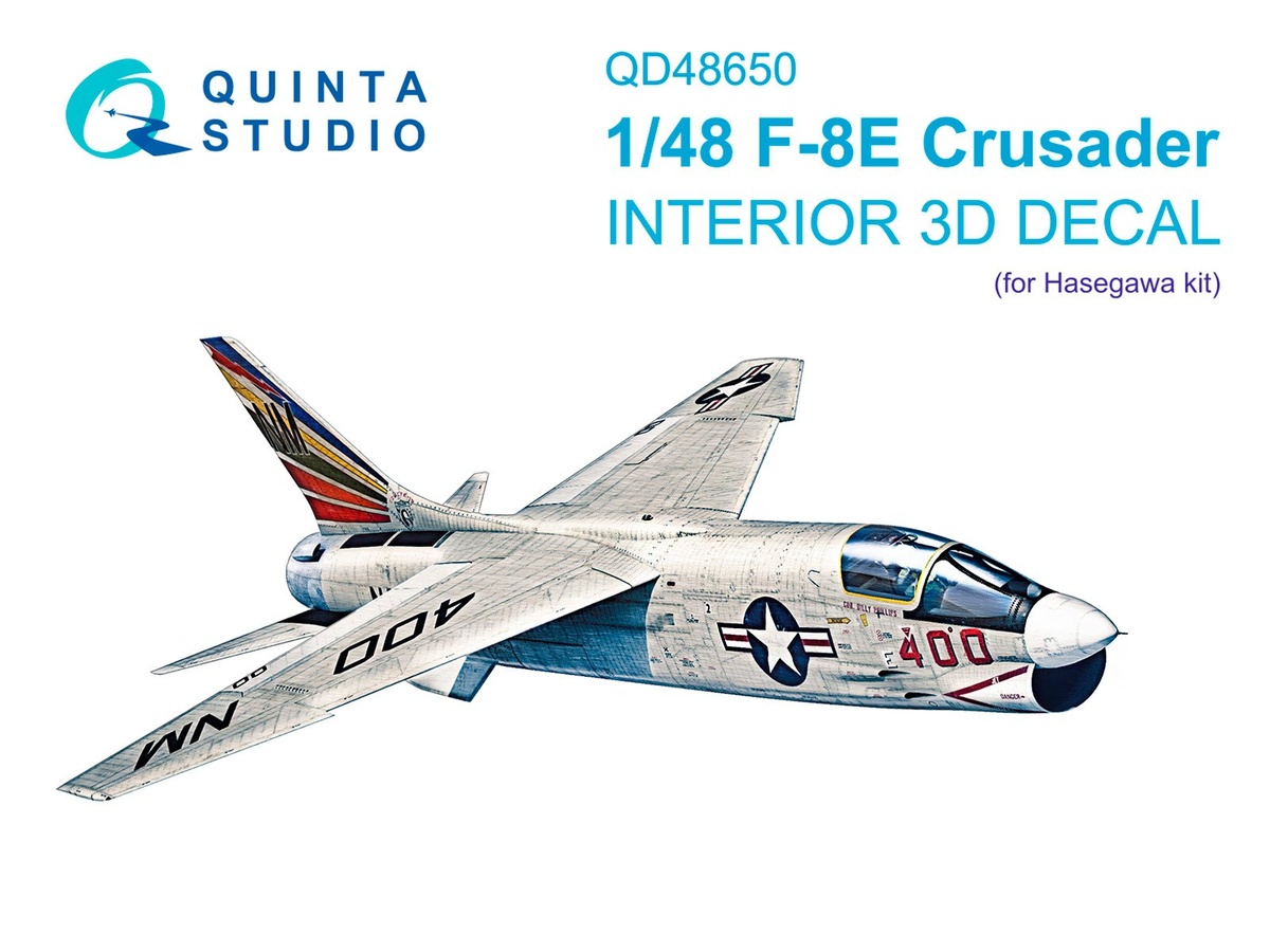 Quinta modelling studio из Пензы выпустила "трехмерную декаль" для деталировки кабины модели F-8E Crusader в масштабе 1/48 от Hasegawa/Hobby 2000: F-8E Crusader (каталожный номер QD48650)