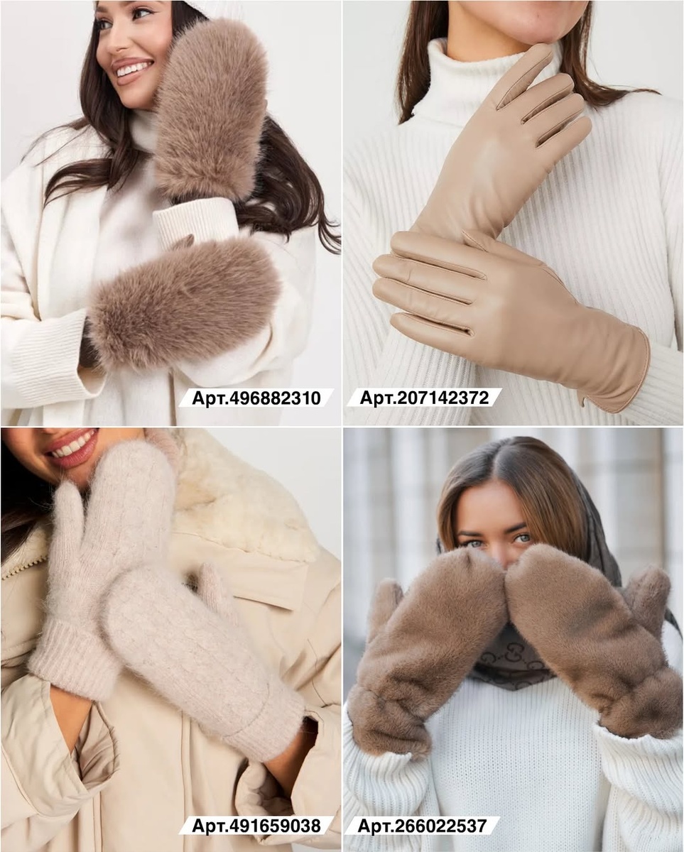 Зима — время, когда аксессуары решают всё: именно они делают образ законченным, ладони — счастливыми, а фотографии — волшебными. Я собрала для вас тёплую новогоднюю подборку варежек и перчаток в благородной бежево-коричневой и ягодно-винной гамме. Идём строго по порядку, как на фото: слева направо, сверху вниз, от первого коллажа к третьему. У каждой модели — характер, тактильность и мой стилистический совет. Объёмный «шёрстяной туман» с коротким густым ворсом. Внутри тёплая подкладка, манжета плотно обнимает запястье. На свету ворс мерцает, создавая эффект дорогой меховой «облачности». Совет стилиста: сочетайте с молочной шапкой и белым свитером-лодочкой — варежки станут мягким акцентом, а лицо засияет теплее. Лаконичная модель с мягкой подкладкой и аккуратной линией пальцев. Пластичное покрытие красиво драпируется у запястья, цвет — тёплый беж с карамельным подтоном. Совет стилиста: идеально к пальто цвета верблюда и высоким сапогам. Добавьте тонкий пояс в тон — получите собранный г