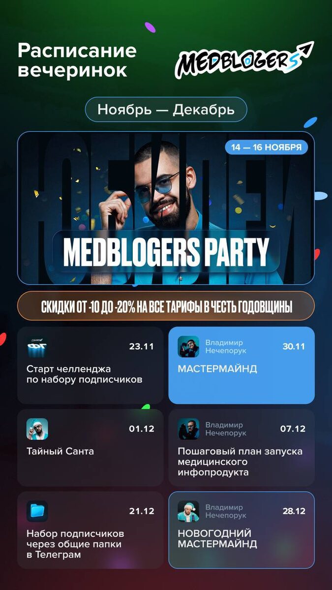 Коллеги! И все все все) Немногие в курсе, что я состою в клубе врачей Medblogers @readydoc Клуб активно поддерживает врачей, которые ведут блоги. Огромного количество лекций и совместные активности для врачей. На фото что ждёт нас в клубе в ноябре-декабре 2025г. Полная информация на сайте ➡️ https://medblogers.ru/