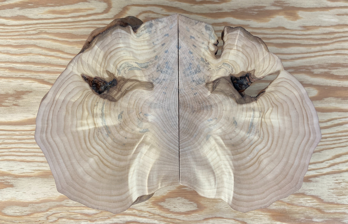 Внутри сувеля волокна не идут прямо, а переплетаются, закручиваются, создавая волнообразную, “живую” текстуру, напоминающую шёлк или облака — в отличие от нормального радиального строения древесины, где волокна направлены вдоль ствола.