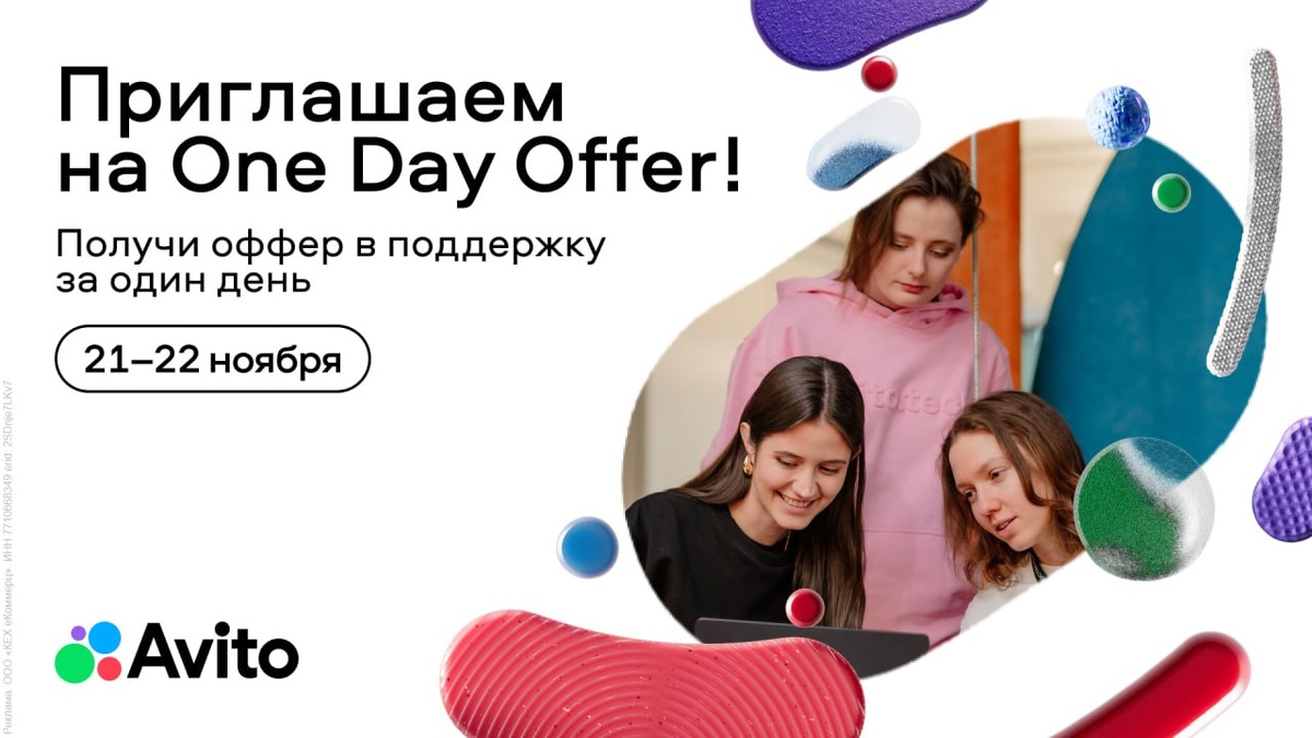 Помнишь, как искал работу месяц? Забудь. В Самаре теперь можно получить оффер за один день – всё благодаря программе Авито One Day Offer. Вакансии – для тех, кто только начинает карьеру: – специалист письменной поддержки пользователей; – специалист устной поддержки пользователей. Работа в клиентском сервисе Авито — это белая зарплата с премиями по результатам работы, расширенный ДМС уже через полгода, тимбилдинги, мастер-классы и другие корпоративные активности. 🔹 Подайте до 20 ноября заявку и заполните анкету 🔹 21 и 22 ноября приходите в офис на мероприятие В программе – экскурсия, выступления сотрудников и собеседование. Уйти с оффером можно в тот же день! Регистрация – тут.