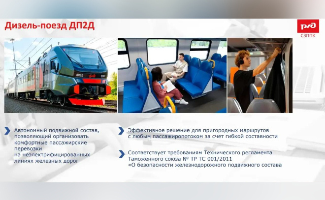 Между Ивангородом и Петербургом со следующего года начнет курсировать новый поезд. Глава комитета Ленинградской области по транспорту Михаил Присяжнюк сегодня на пресс-конференции в «Интерфакс» представил его экстерьер и интерьер. Главной особенностью состава – дизель-поезда ДП2Д – называют гибридную силовую установку, которая позволит ему двигаться и по электрифицированным, и по неэлектрифицированным участкам. Эта способность делает его незаменимым для маршрутов с отсутствующей контактной сетью.Михаил Присяжнюк, глава комитета по транспорту Ленинградской области Отмечается, что на направлении «Петербург – Кингисепп – Ивангород» будет курсировать шестивагонный поезд на 636 сидячих мест. Сейчас на этом маршруте используется трехвагонный состав.