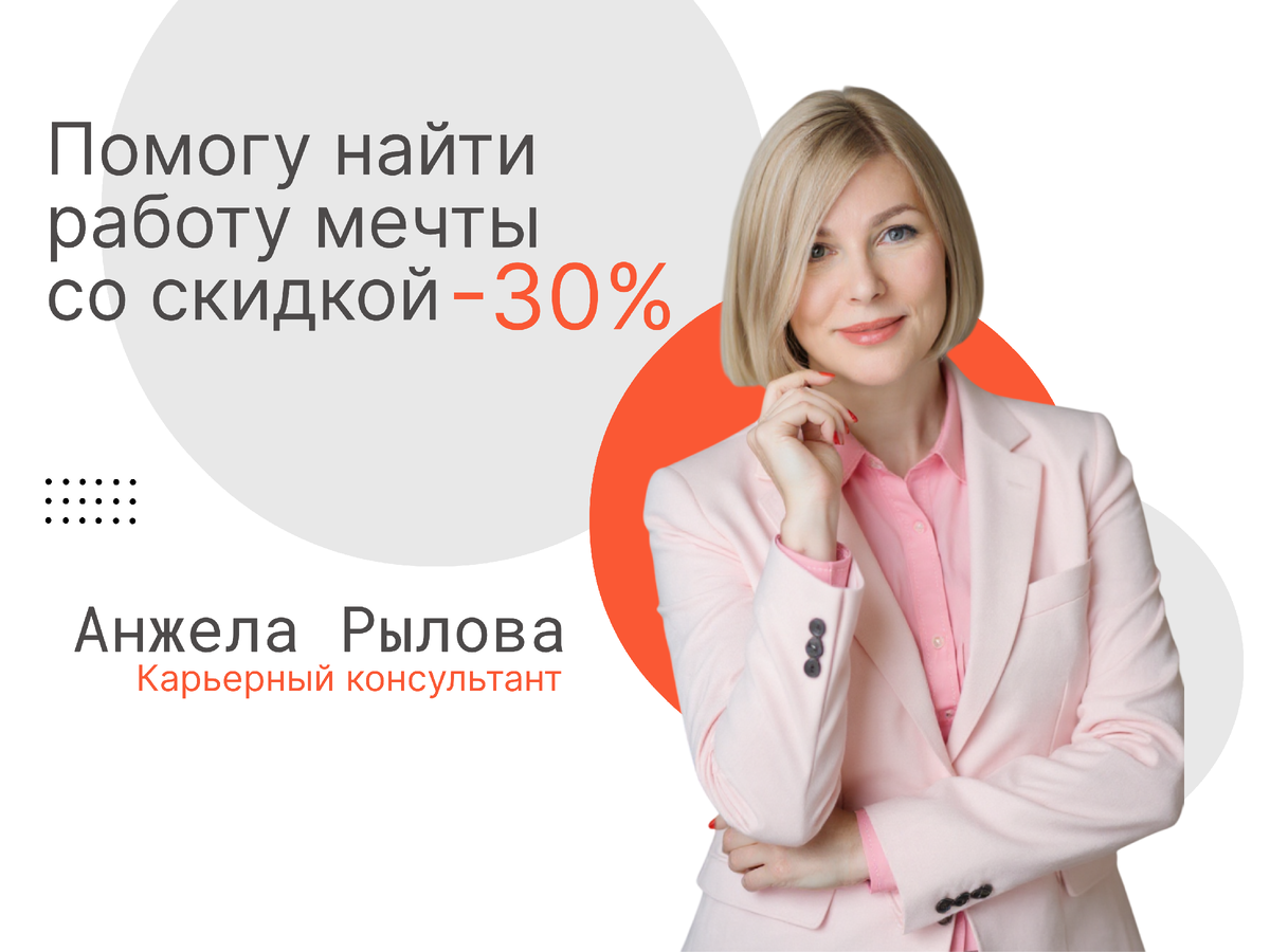 Меня зовут Анжела Рылова — профессионал в HR сфере с 20-ти летним опытом работы. В настоящее время консультирую соискателей индивидуально.