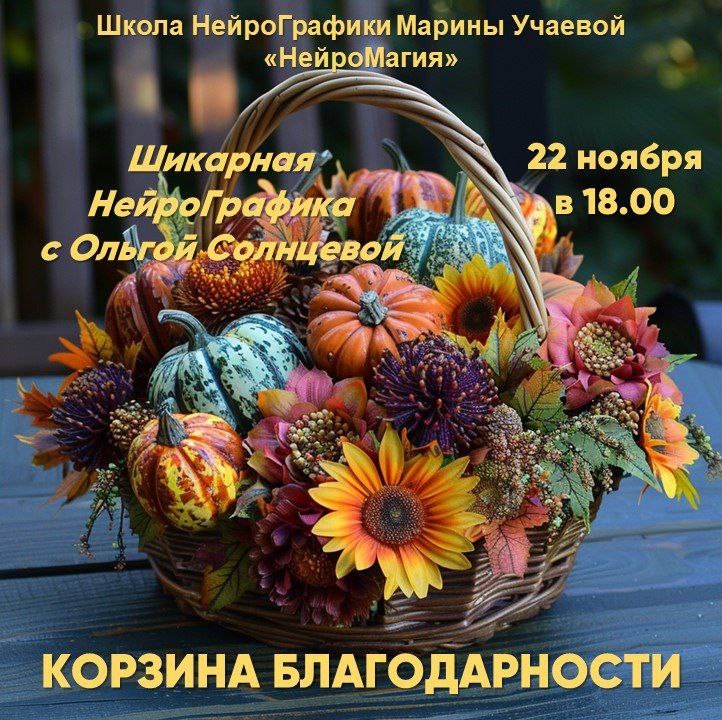 Дорогие друзья! Нас ждёт невероятное событие! Вместе с Ольгой Солнцевой проведем для вас мастер-класс по Шикарной НейроГрафике "Корзина благодарности", где будем учиться так стилизовать свои работы, чтобы они точно имели Вау эффект, были не просто красивыми, а шикарными! Когда? 22 ноября (суббота) в 18:00. Где? Улица 40 лет октября, дом 12, нежилое помещение 65 у первого подъезда. Стоимость? 1500 рублей. Продолжительность? 3-3,5 часа. Вас ждёт изысканный десерт и ароматный чай! Всё материалы предоставляются! С собой можно взять вторую обувь! #НейроГрафика#Мастеркласс