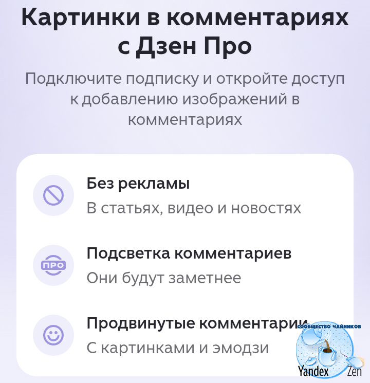 Большое спасибо Нику Т за информацию. "Теперь добавлять изображения в комментарии могут только пользователи с подпиской Дзен Про. Мы приняли это решение, потому что большое количество картинок в комментариях часто отвлекает и снижает качество обсуждений. Такой подход сделает общение в комментариях более содержательным и удобным для чтения. ©️" Посмотрим, кого цыпсо проспонсирует на платную подписку. Это интересно, потому как будет видно, из какого источника пришли деньги на оплату.