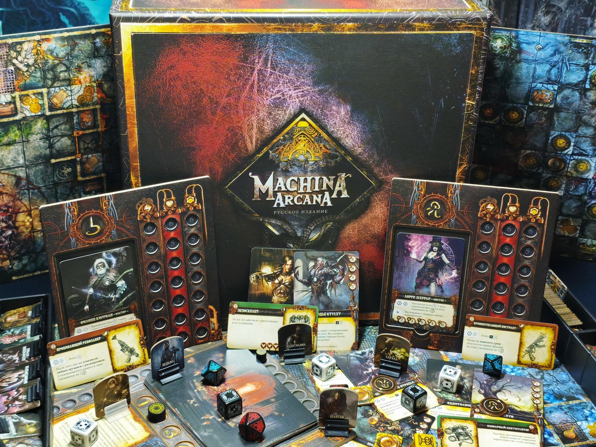 Machina Arcana — очень приятное пополнение, которое я буду продолжать проходить и изучать. У игры высокий порог вхождения из-за объёма правил и множества нюансов. Но я пробрался сквозь них и получил действительно крутой и атмосферный хоррор, где переплелись стимпанк и мифы Лавкрафта. Тактическая составляющая в данжен-кроулерах вроде обычное дело, но благодаря большому разнообразию предметов и их комбинированию, а также интересному взаимодействию с окружением, игра подарила мне уникальный опыт при каждом новом погружении. Кроме того, выходящие тайлы и появляющиеся монстры создавали разные ситуации, и чтобы выжить, приходилось подстраиваться под них. В остальном…иллюстрации, компоненты, саундтрек – всё на месте. Я доволен!