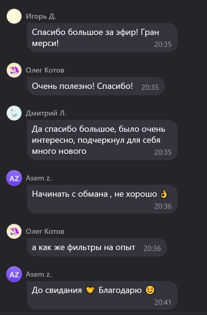 вебинар был супер полезным, обсудили и структуру резюме и как себя позиционировать на собеседовании, как говорить про деньги/опыт/навыки и многое другое. отдельно посвятили время ответам на ваши вопросы из чата и вопросы учеников (я заранее попросил их написать кого что волнует и интересует) Запись и материалы вебинара появятся в группе скорее всего завтра, пойду отдыхать)