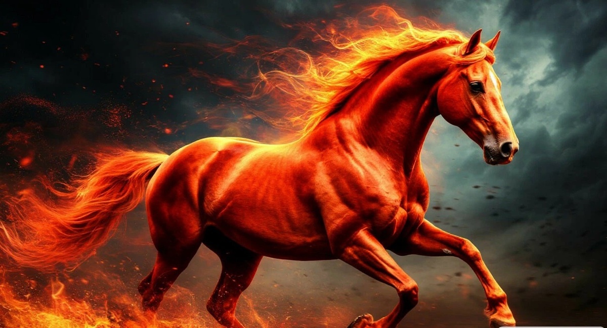 Лошадь в восточной традиции — это воплощение неукротимой энергии, свободы и целеустремлённости. Она не умеет стоять на месте: ей нужно мчаться, достигать, побеждать. А когда к этому характеру добавляется стихия Огня, всё становится ещё ярче и горячее.