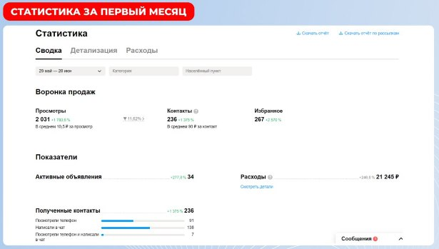 Клиент - фирма по бухгалтерскому сопровождению, которые сперва сотрудничали с другим агентством по продвижению на Авито. С самого начала был запрос на 300 заявок с Авито😱 , так как они видели в той же нише, имеющий колоссальный успех. Наша цель добиться столь же эффективной рекламы и привлечения клиентов. ✔️ В первый месяц опубликовали 34 объявления и получили 236 заявок на услуги при затратах чуть больше 21 тыс. руб. Результат приятно удивил клиента, а для нас был вполне ожидаемым. Предлагаю сравнить статистику и конверсии по объявлениям до начала нашего сотрудничества: ✔️ Сбор ключевых запросов по геолокациям - прям наглядно видно, как это влияет на показы и заявки; ✔️ Живые фотографии, вызывающие доверие; ✔️ Тексты мы тоже переписали под боли ЦА; ✔️ Провели работу с отзывами 📌 Размещались объявления по самым крупным географическим пунктам центральной части России. Потом добавили Ставрополь, Сочи, Набережные Челны и по этим городам также получили весьма хорошие результаты. 📌 Стои