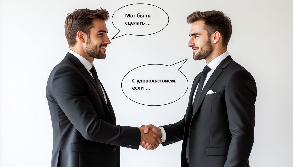 Что произошло? Наш искатель выгоды не отказался, но сместил разговор в плоскость переговоров. Он обозначил свою готовность помочь, но при этом четко дал понять, что его время и навыки цены, и ожидает чего-то взамен. И предложил конкретные варианты: