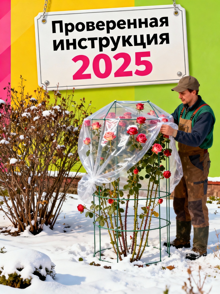 Розы — королевы сада, но зимние морозы могут погубить даже самые стойкие сорта. Правильное укрытие на зиму — залог их здоровья и пышного цветения в следующем сезоне. В этой статье мы разберём самые эффективные способы защиты роз от холода в ноябре 2025 года. Оптимальное время для укрытия роз — конец октября – начало ноября, когда температура стабильно держится в районе -5°С. Слишком раннее укрытие приводит к выпреванию, а позднее — к обмерзанию побегов. Перед укрытием розы нужно правильно подготовить: 1. Воздушно-сухое укрытие (самый надёжный метод) Установите над кустом каркас из дуг или деревянных реек высотой 40–50 см. Каркас должен быть выше роз и не касаться побегов. Сверху натяните спанбонд плотностью 60 г/м² в 1–2 слоя. Воздушная прослойка работает как термос, сохраняя тепло и защищая от перепадов температур. 2. Укрытие еловым лапником Еловый лапник — идеальный материал для укрытия роз. Он пропускает воздух, обладает антисептическими свойствами и отпугивает грызунов. Окученные