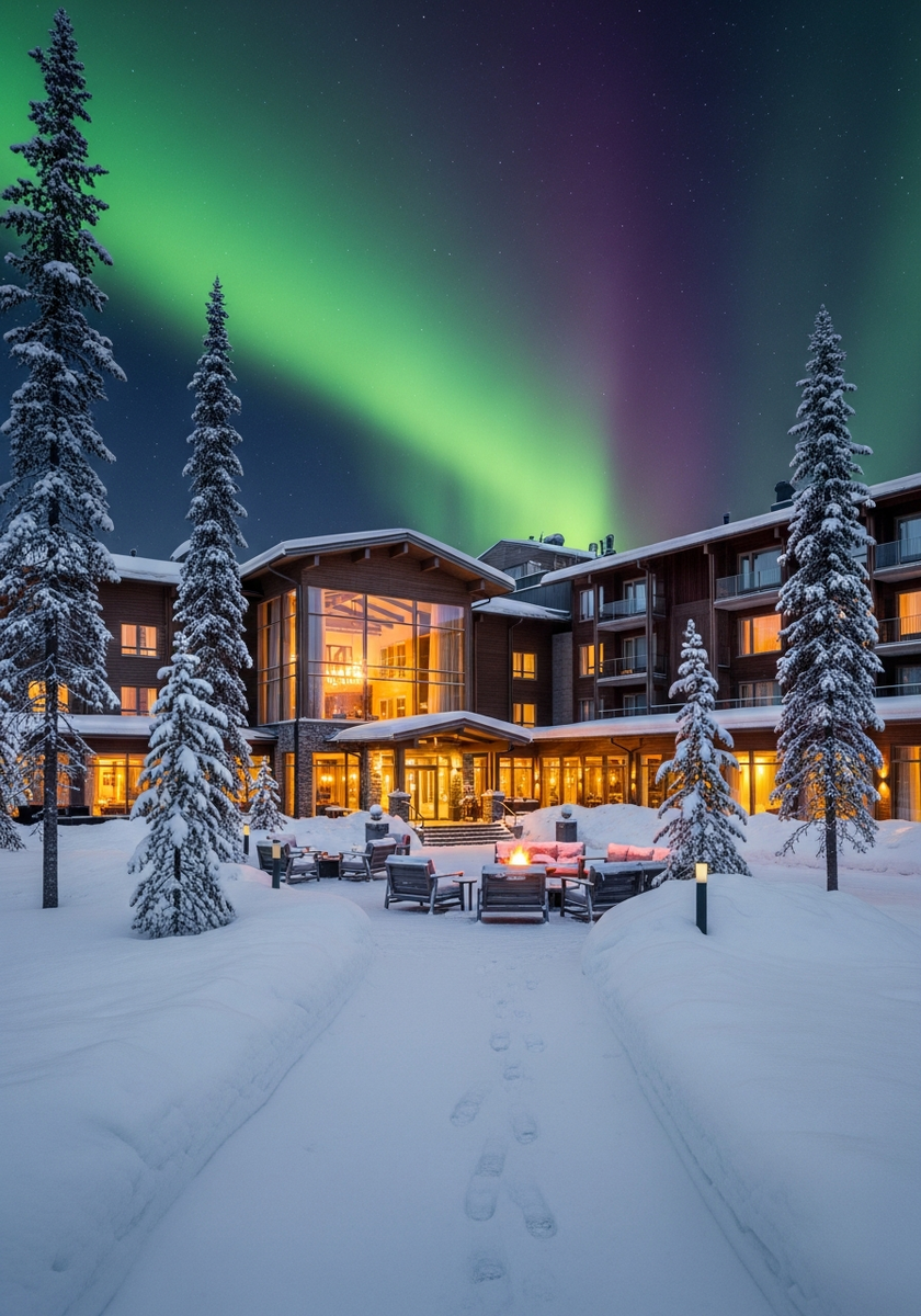 32 номера Arctic TreeHouse Suites и 5 стеклянных коттеджей сочетают роскошный комфорт с близостью к арктической природе. Большие панорамные окна открывают впечатляющие виды на лес и арктическое небо, позволяя наблюдать северное сияние и полуночное солнце прямо с кровати. Ресторан Rakas предлагает кулинарные изыски из арктических ингредиентов. Гости отмечают уютную гнездообразную атмосферу номеров и исключительный сервис.