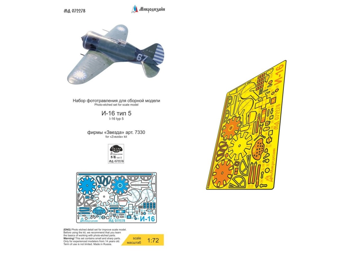 ТПО "Микродизайн" выпустили набор фототравления для модели И-16 тип 5 от Звезды в 1/72 масштабе.
