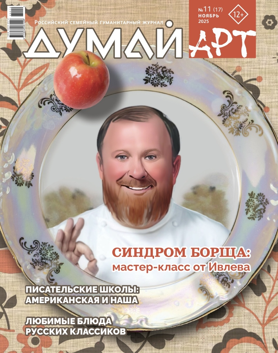 Смысл жизни, страх, еда, Шекспир и кей-поп — что объединяет всё это? Конечно же, искусство понимать и чувствовать! Новый номер «ДУМАЙ АРТ» — о вкусе, вдохновении, о том, как творить и как жить со смыслом. 🎨 В ЭТОМ НОМЕРЕ: 👨🍳 Константин Ивлев — о профессии шефа, дисциплине, борще без моркови и новой русской кухне. 📚 Писательские школы России и США — где рождаются авторы будущего? 🏡 «Болдинская осень» — вдохновение, выросшее из вынужденного уединения. 🍽 Любимые блюда русских классиков — Пушкин, Толстой, Чехов и Тургенев за одним столом. 🕵️♂️ Внеклассное чтение: детективы, которые невозможно отложить — от Шерлока Холмса до Васи Куролесова. 🏙 Франкфуртская кухня — архитектура, с которой начался современный дизайн быта. 🎭 Почему в операх все принцы и принцессы? — музыкальные тайны сцены. 🛍 Рейтинг: лучшие шефы и топ психологов России. 🎨 Искусство перформанса — когда художник становится действием. 🧠 Религия, фотография, технологии, школы этикета — и даже инструкция «Как дари