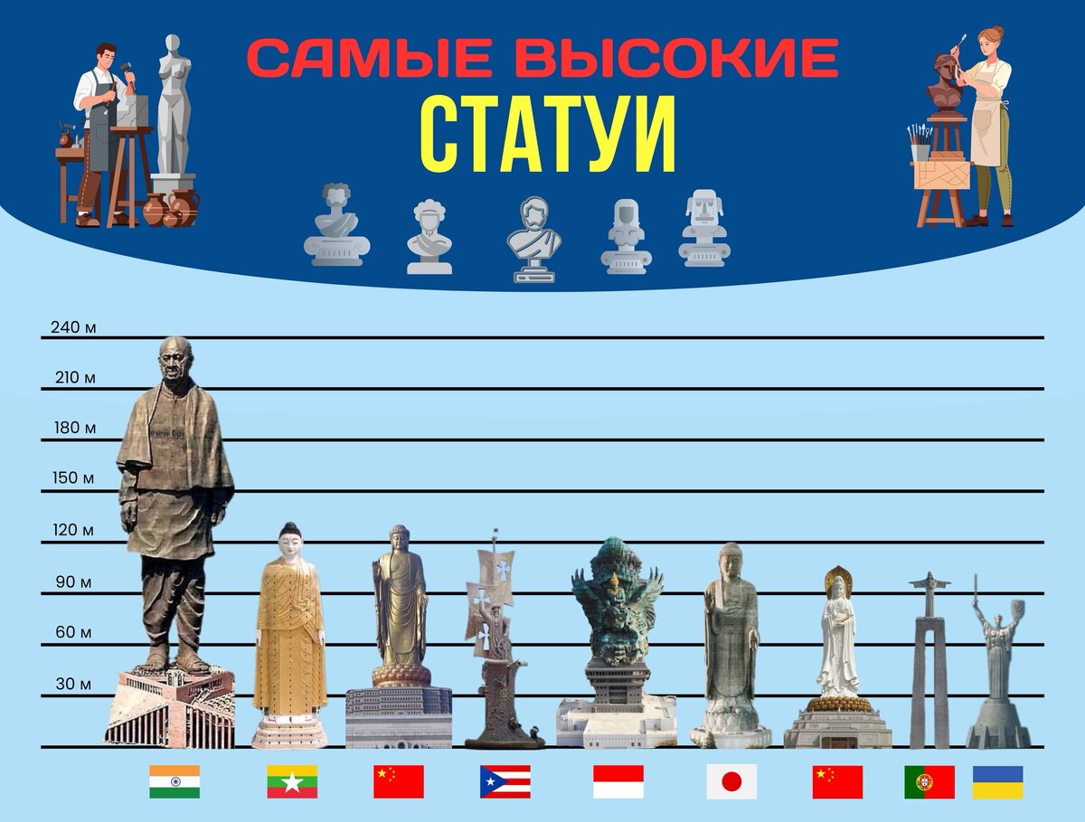 🗿Самые высоки статуи (с учетом постамента) #факты #статистика #самыевысокиестатуи