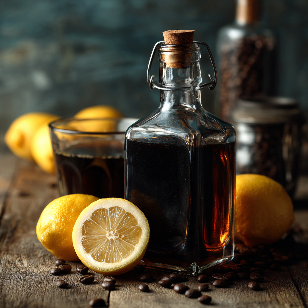 Настойки с необычным сочетанием лимона и кофе - это настоящий кулинарный эксперимент, который способен удивить даже искушённого дегустатора! На первый взгляд кажется, что эти ингредиенты маловероятные соседи: лимон придаёт напитку свежести, а кофе - глубину и лёгкую горчинку. Тем не менее, такой дуэт встречается ещё в старых рецептах настоек и домашних ликёров Восточной Европы и Средиземноморья. Лимон традиционно добавляли ради аромата и лёгкой кислинки, а кофе начал появляться в рецептах с приходом моды на «экспрессо-тоники». В результате мы получаем напиток, в котором яркая цитрусовая свежесть уходит на второй план после мягкой вуали кофе, но чуткий нос непременно уловит оба оттенка. Настойка лимон с кофе легко готовится и прекрасно подходит для уютных домашних вечеров, дружеских встреч, или просто как неожиданное дополнение к десерту. Классическая лимонно-кофейная настойка на самогоне Ингредиенты: - Лимон - 1 крупный - Самогон - 1 л - Зерновой кофе (обжаренный, не молотый) – 15-20 з