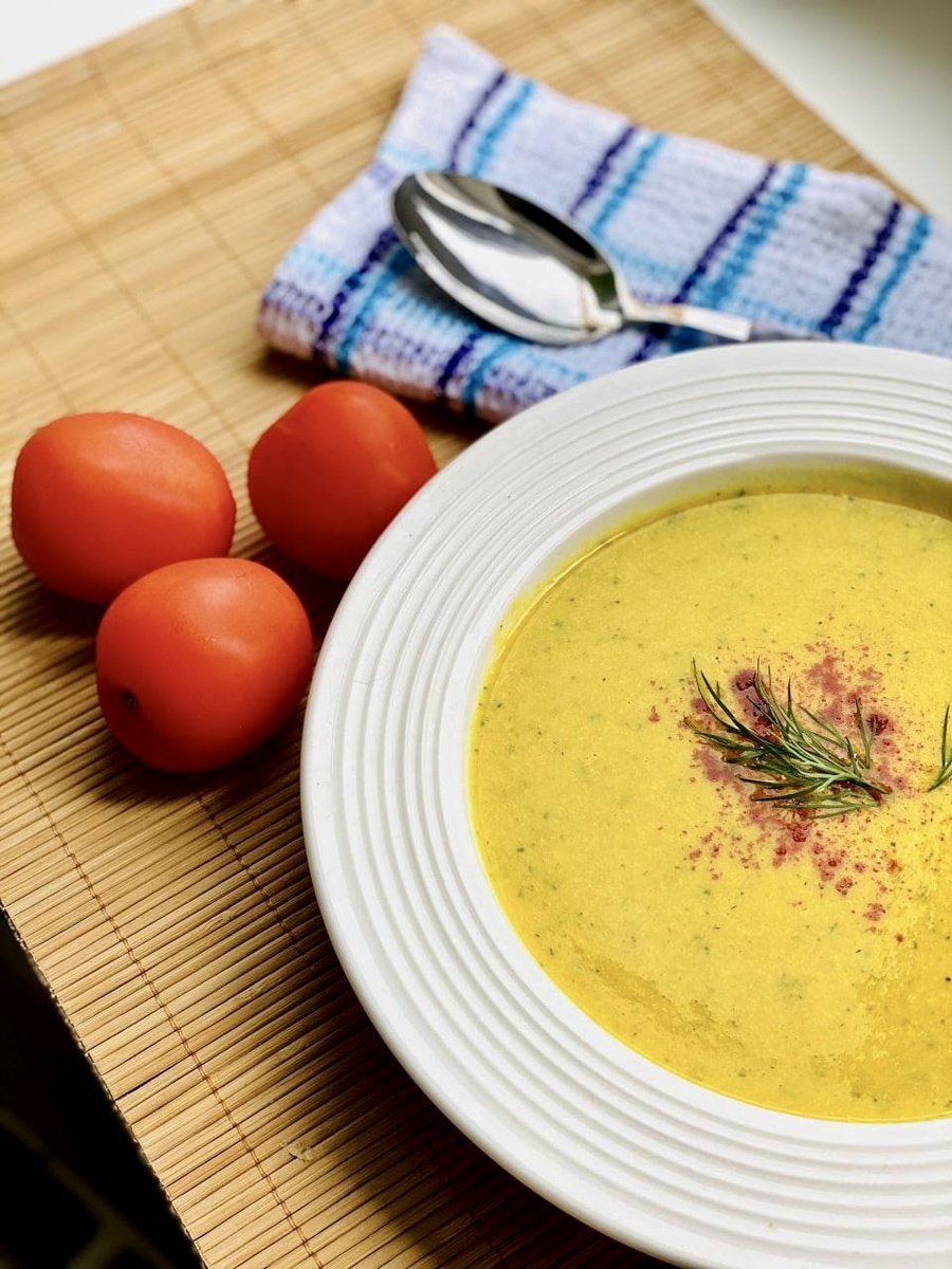 Ингредиенты: ▫️вода — 1 ½ л ▫️капуста цветная — 700 г ▫️морковь — 1 шт. ▫️кокосовое молоко — ½ стакана ▫️кешью — 100 г ▫️куркума — 1 ч. л. ▫️укроп свежий — 3 веточки Способ приготовления: 1. Морковь и капусту отвариваем до готовности. 2. Добавляем орехи (предварительно их лучше замочить примерно на 1 час), молоко, соль, специи, укроп и пюрируем все блендером. 3. Подаем с веточкой укропа и щепоткой паприки. Приятного аппетита!