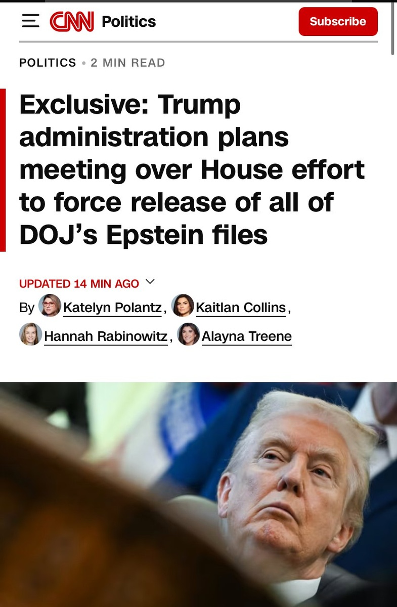 Trump officials rush to meet today over House plan to force a vote on releasing EPSTEIN FILES — CNN