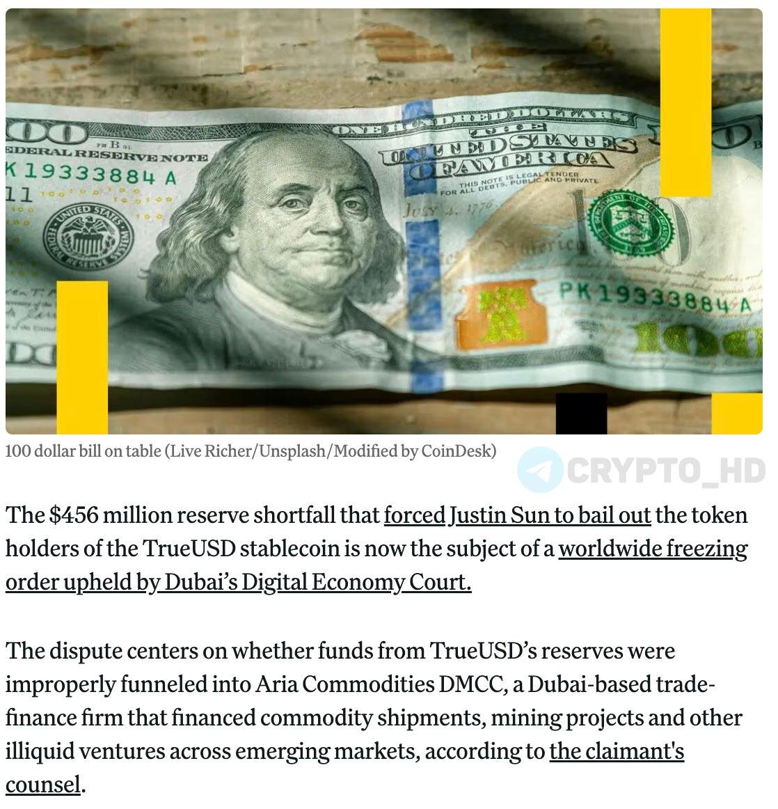 #tusd #trx ❌🇦🇪 Дубайский суд заблокировал $456,000,000, связанных с TrueUSD – coindesk ➥ Это те самые деньги, которых ранее не хватало в резервах TUSD. ➥ Из-за этой дыры Джастин Сан был вынужден покрывать убытки и спасать стейблкоин от краха (подробнее о скандале) ➥ Digital Economy Court в Дубае заморозил $456m, связанные с резервами стейблкоина TrueUSD – есть риск, что деньги могут отмыть. ➥ Суть судебного разбирательства: Techteryx (эмитент TUSD) утверждает, что часть резервов незаконно ушла через First Digital Trust (Гонконг) в Aria Commodities DMCC (Дубай), где деньги вложили в неликвидные проекты и кредиты + на этом фоне возник дефицит ликвидности TUSD. ➥ Это первый случай, когда дубайский суд применил глобальную заморозку активов в криптовалютном споре – теперь активы под арестом до решения судов Гонконга. Crypto Headlines