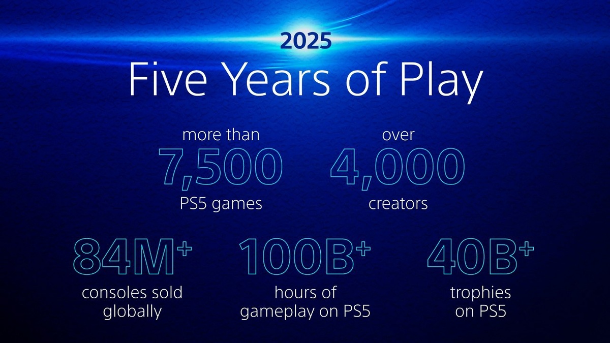 Sony подвела итоги 5 лет PS5 🔵Выпущено более 7500 игр; 🔵Лидеры по наигранным часам в сингле — Assassin’s Creed Valhalla, God of War Ragnarok и Hogwarts Legacy; 🔵В мультиплеере — Fortnite, GTA V и Call of Duty: Modern Warfare II; 🔵Всего выбито 40 млрд трофеев, из них 110 млн платиновых; 🔵Общее время в играх — 100 млрд часов. Продано 84 млн консолей PS5. PlayStation Новости 🔥 Актуальные скидки | смотреть