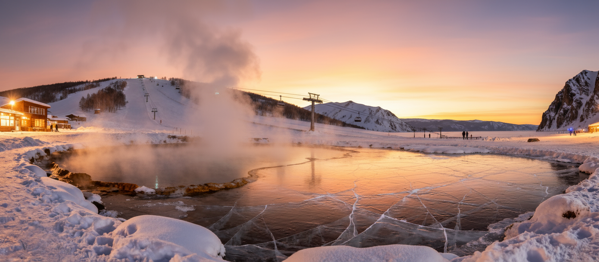 Температура -15-25°C, снега много. Термальные источники под открытым небом при -20°C — феерия ощущений. Конные прогулки, катание на снегоходах, шаманские практики. Место силы для тех, кто устал от цивилизации.