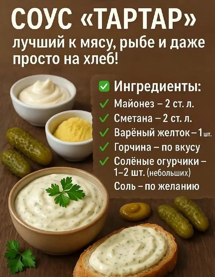 🥣 Домашний соус Тартар — нежный, пикантный и всего из шести ингредиентов