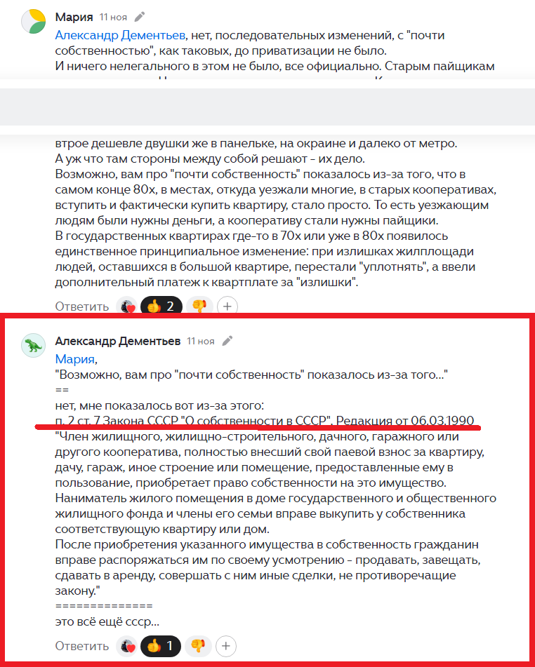 Только отмечу, что НЕ только личное и кооперативное можно было продать законно, но также государственное жильё. ПО ЗАКОНУ, точнее Постановлению. Важное отличие от пресловутой "приватизации жулья" времён Алкаша я выделил жирным: