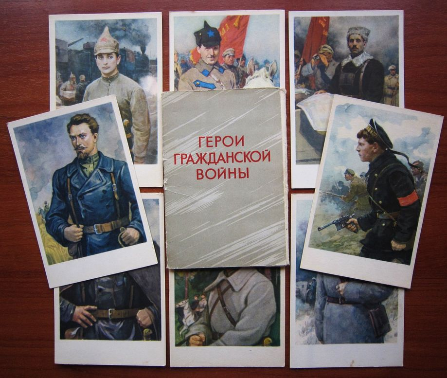 Серия открыток Льва Котлярова (1925—2007) «Герои гражданской войны». 1964
