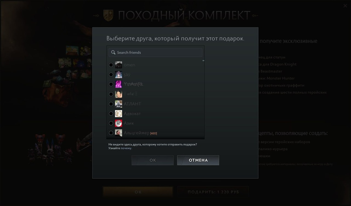 Теперь в Доте можно подарить Походный Комплект Одному другу можно подарить один комплект.