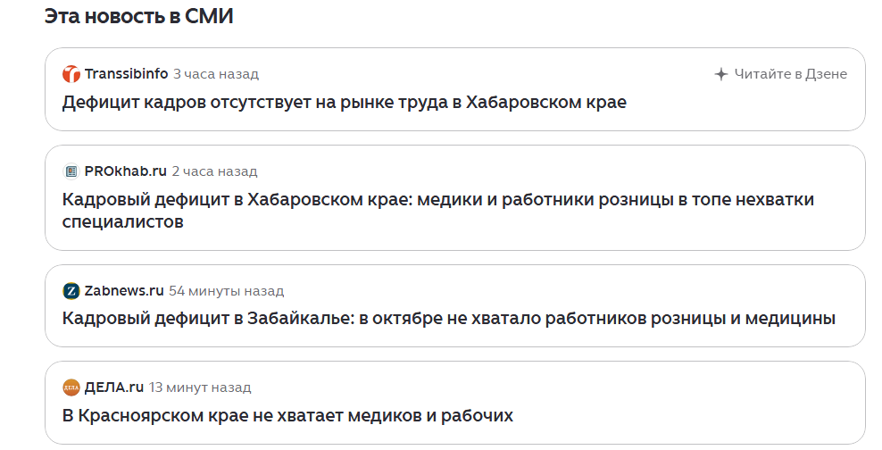 Помимо традиционных дураков, дорог и дураков на дорогах в нашем богоспасаемом отечестве есть и другие проблемы. К одной из них я бы отнесла чинопочитание без должного понимания. Помните, во время ВЭФ я немножечко рассказывала о том, как живут всяческие помощники сенаторов и советники депутатов? Если нет, то почитать можно по ссылочке: Сегодня хочу коснуться другой темы - темы публикаций в СМИ в рамках так называемого информационного обслуживания. Об этом мы немножечко говорили тоже. Например, в статье про небывало успешный рейтинг мэра Хабаровска, или про то, чей павильон признали лучшим на том же ВЭФ. Сегодня никаких фокусов с разоблачениями, простой пример как рядовому читателю отличить текст суперлояльного СМИ от обычного. Итак, перед вами обычный скрин экрана с топа яндекс-новостей. Основа новости - релиз сервиса hh. Такие релизы рассылают пресс-службы всех топовых компаний, и страшно радуются, когда новостники обращают на них внимание. В релизе итоги рынка труда за октябрь меся