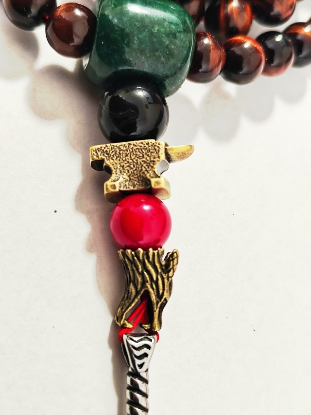 Для тех, кто рождён, чтобы вести. Для предпринимателей, политиков, духовных искателей, стоящих у истоков больших дел. Это инструмент для принятия судьбоносных решений, для укрепления духа перед битвой, для того, чтобы ваше слово обрело несокрушимую силу. В нем гармонично сочетаются сила земли (бычий глаз, агат, нефрит), огня (коралл), духа (волк) и творения (кузнечная атрибутика). Это настоящая история в бусинах, которую приятно держать в руках.