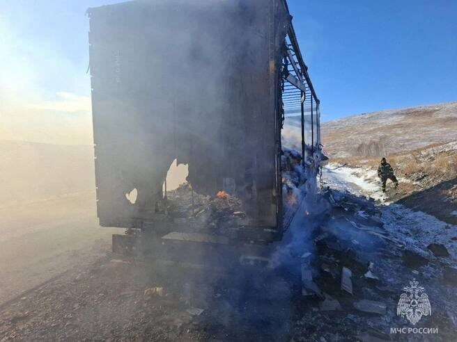 Грузовик с музыкальными колонками сгорел на трассе в Оловяннинском районе