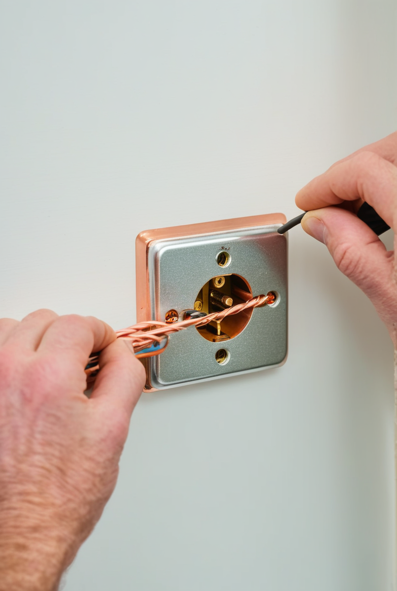 Монтаж электропроводки и установка розетки: подключение проводов с медной жилой, зачистка изоляции, скрытая установка в подрозетник, монтаж лицевой панели и рамки для розетки