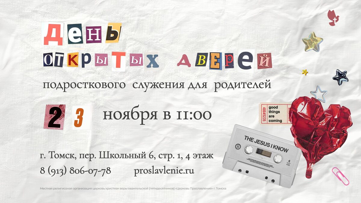 ‼️День открытых дверей на подростковом служении для родителей! ‼️ 📆23 ноября в 11:00 Мы приглашаем всех родителей на подростковое служение! Посмотреть, как всё проходит, почувствовать атмосферу, поиграть вместе, пообщаться, получить слово и, конечно, вместе прославить Бога. 🏠Ждем вас по адресу: Школьный переулок, 6, стр. 1, 4 этаж ❤️Мы готовимся и уже ждём вас!