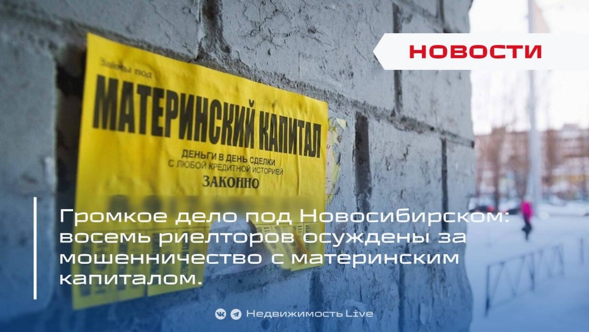 ⚡️ Громкое дело под Новосибирском: восемь риелторов осуждены за мошенничество с материнским капиталом. ℹ️ В Новосибирской области вынесен обвинительный приговор группе из восьми риелторов, признанных виновными в хищении средств материнского капитала. Мошенники использовали подложные документы для оформления сертификатов на материнский капитал, создавая фиктивные сделки купли-продажи недвижимости. Общий ущерб государству составил 8,9 млн рублей. «Подсудимые систематически совершали мошеннические схемы при оформлении выплат в 2020-2021 годах», — сообщили в пресс-службе судов общей юрисдикции. 👩🏻⚖️ Назначенные наказания: • Двое организаторов получили 4 года и 3,5 года условно с штрафами 300 тыс. и 100 тыс. рублей. • Шесть соучастниц — по 3 года условного срока. • Одному из фигурантов запрещено заниматься кредитной деятельностью на 2 года. 📌 Приговор ещё не вступил в законную силу — у сторон есть 10 дней на подачу апелляции. Дело стало одним из крупнейших в Сибирском федеральном окр