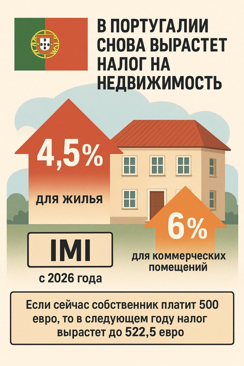 Π‘ 2026 Π³ΠΎΠ΄Π° Π²Π»Π°Π΄Π΅Π»ΡΡΠ°ΠΌ Π½Π΅Π΄Π²ΠΈΠΆΠΈΠΌΠΎΡΡΠΈ Π² ΠΠΎΡΡΡΠ³Π°Π»ΠΈΠΈ ΠΏΡΠΈΠ΄ΡΡΡΡ ΠΏΠ»Π°ΡΠΈΡΡ Π±ΠΎΠ»ΡΡΠ΅: Π½Π°Π»ΠΎΠ³ IMI (Π°Π½Π°Π»ΠΎΠ³ Π½Π°Π»ΠΎΠ³Π° Π½Π° ΠΈΠΌΡΡΠ΅ΡΡΠ²ΠΎ) ΡΠ²Π΅Π»ΠΈΡΠΈΡΡΡ Π½Π° 4,5% Π΄Π»Ρ ΠΆΠΈΠ»ΡΡ ΠΈ Π½Π° 6% - Π΄Π»Ρ ΠΊΠΎΠΌΠΌΠ΅ΡΡΠ΅ΡΠΊΠΈΡ