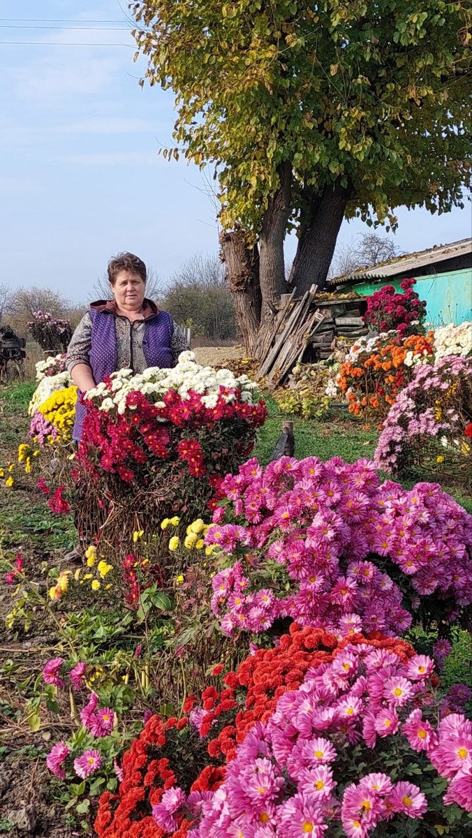 Этот отрывок из популярного русского романса прошлого столетия пока еще не актуален для кубанского ландшафта. В наших краях в ноябре хризантемы находятся в самом пышном цветении. Белые, желтые, розовые, бордовые - главные краски осени -разукрасили придомовые дворики заботливых хозяев. Еду по улицам села Новомихайловского, мимолетно замечаю целый палисадник разноцветных хризантем. -Наверное выращивают на продажу,- подумала я. Заехала на местную почту. Смотрю стоит в зале для посетителей ваза с хризантемами. Как будто с того палисадника и принесли. Спрашиваю: "А кто у вас там в двух кварталах отсюда хризантемы выращивает?" -Это за забором которые? Мои, наверное,- отозвалась сотрудница почты Наталья Борисенко. Стали выяснять за каким забором, где примерно. Вроде все "срослось" - хозяйка примечательного палисадника нашлась, так кстати. И в вазе цветы, стало быть, с того самого палисадника. Попросила поделиться успехом цветовода и разрешения самостоятельно проехать к палисадни