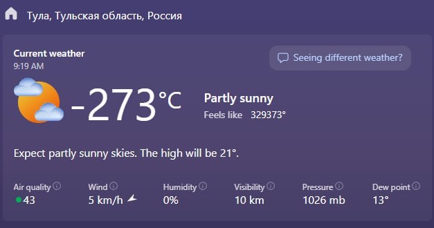 🌡 Уважаемые туляки! Сегодня у вас небольшое похолодание. Выходя из дома, захватите с собой медведя, балалайку и водку. Пряник тоже берите! Только так вы почувствуете себя тепло, даже адски жарко! С заботой, Microsoft